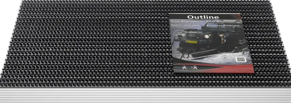 Die Bürstenmatte ist mit harten, schwarzen Borsten ausgestattet. Diese eignen sich insbesondere zum Enternen von hartneckigem und groben Schmutz von den Schuhen. Die Outline Bürstenmatten sind insbesondere für den Außenbereich konzipiert und daher auch gut wetterbeständig.