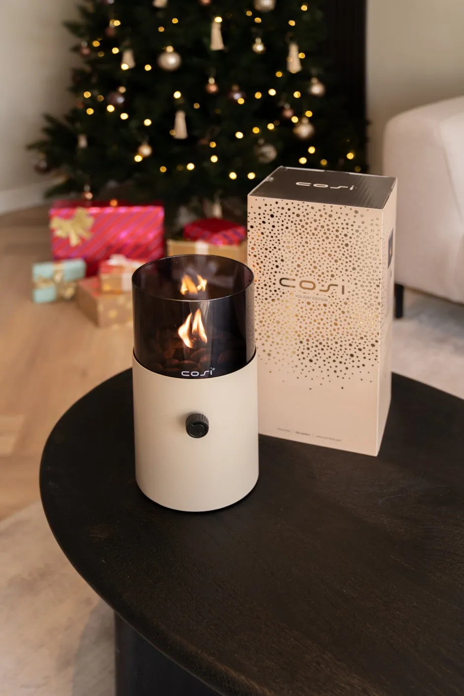 Überrasche deine Liebsten oder dich selbst mit diesem Tischkamin von Cosiscoop, der durh das Rauchglas besonders luxuriös wirkt. Das Cosiscoop Original in Beige-Rauchglas ist einzigartig, da es – anders als die anderen Modelle – keinen Griff hat.