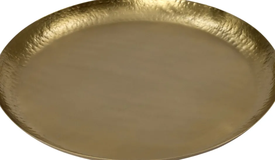 Dieser goldene runde Dekoteller ist in verschiedenen Größen erhältlich. Dieser Teller misst 35,5 x 35,5 x 2 cm.