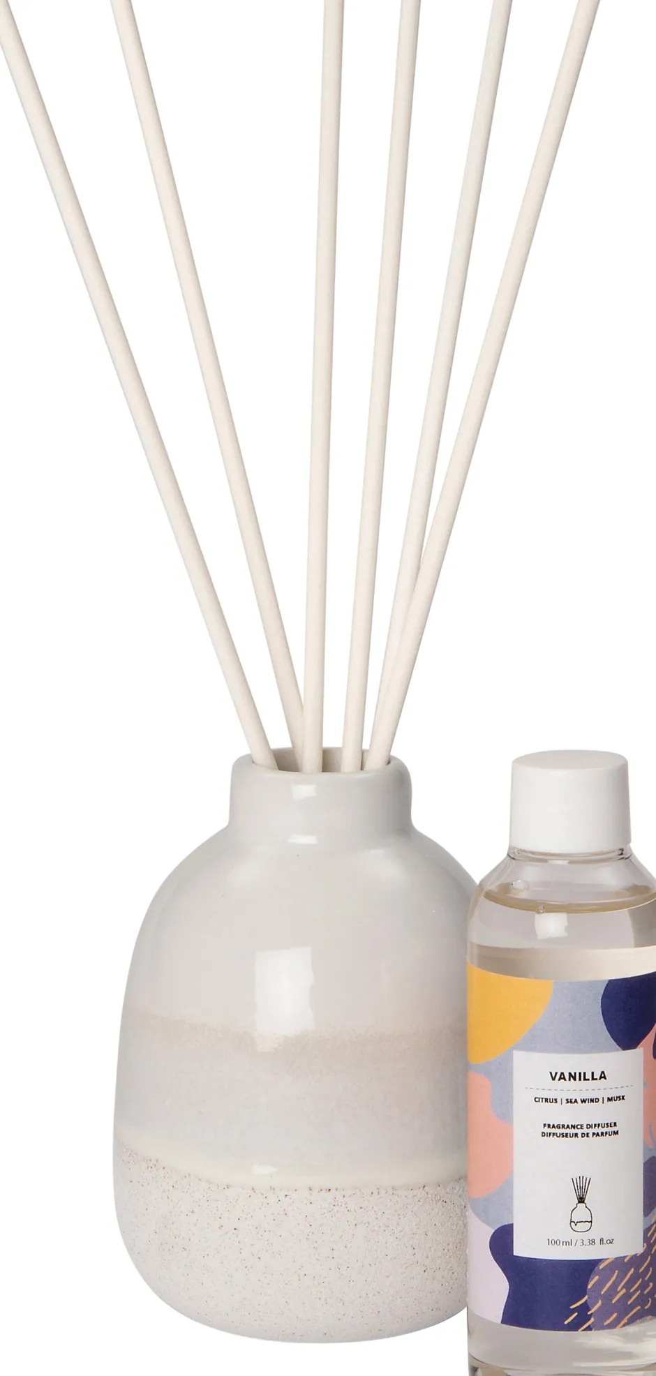 Die Duftstäbchen werden mit einem eleganten Flakon mit Duftflüssigkeit in der Duftnote Vanilla geliefert. Der Duft hat einen aromatischen und samtigen Unterton, der für ein weiches, dezentes und doch auch würziges Dufterlebnis sorgt.