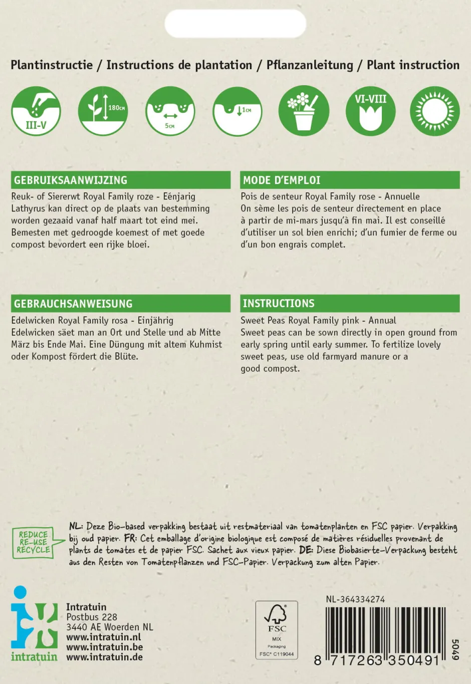 | Pflanztipps | Die Lathyrus-Samen sind relativ hart. Weiche sie darum über Nacht ein. |