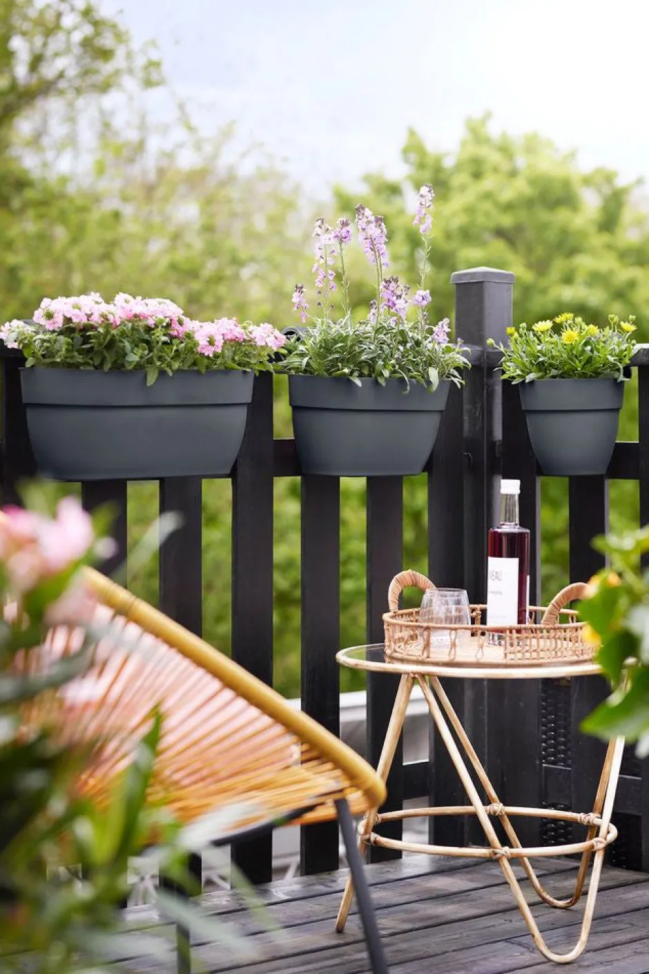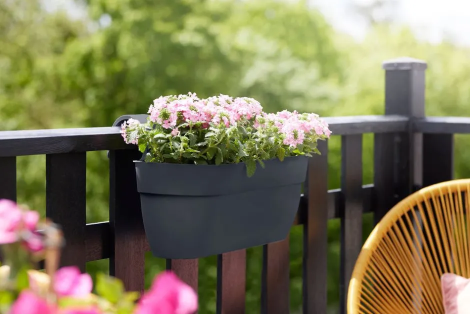 Dieser graue Vibia-Balkonkasten aus der Elho-Kollektion ist eine echte Bereicherung für deinen Balkon. Der aus recyceltem Kunststoff hergestellte Balkonkasten hat eine rechteckige Form, ist sehr stilvoll und eignet sich hervorragend für mehrere Pflanzen. Noch nie hat das Gärtnern auf dem Balkon so viel Spaß gemacht und die Auswahl war so groß! Die Maße dieses Modells sind 46 x 24,1 x 26,5 cm. Außerdem ist dieses Modell in verschiedenen anderen Größen und Farben erhältlich.