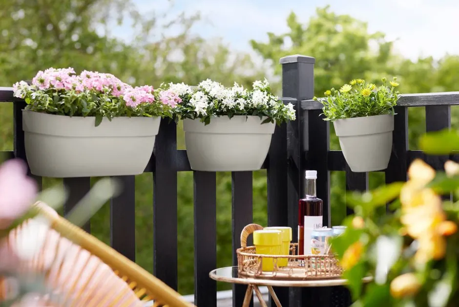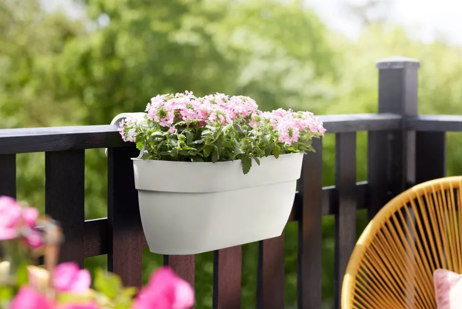 Dieser weiße Vibia-Balkonkasten aus der Elho-Kollektion ist eine echte Bereicherung für deinen Balkon. Der aus recyceltem Kunststoff hergestellte Balkonkasten hat eine rechteckige Form, ist sehr stilvoll und eignet sich hervorragend für mehrere Pflanzen. Noch nie hat das Gärtnern auf dem Balkon so viel Spaß gemacht und die Auswahl war so groß! Die Maße dieses Modells sind 46 x 24,1 x 26,5 cm. Außerdem ist dieses Modell in verschiedenen anderen Größen und Farben erhältlich.