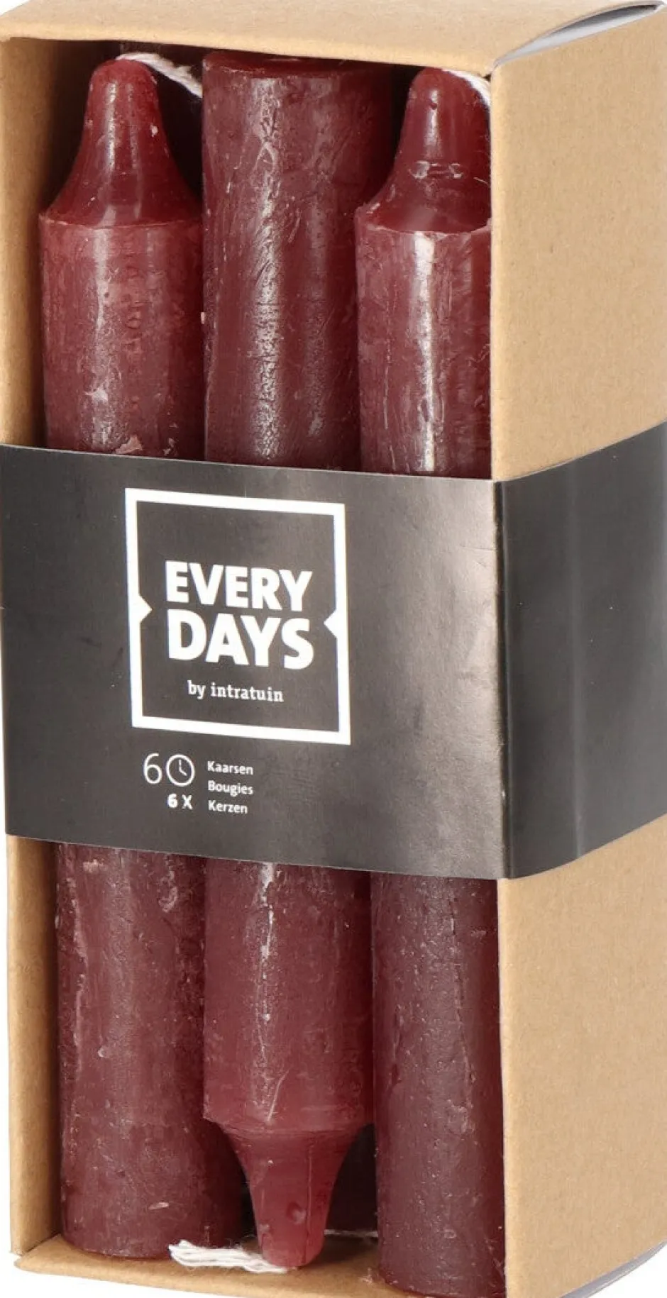 Mit den Stabkerzen von Everydays zauberst du im Handumdrehen eine festliche Stimmung und gemütliche Atmosphäre im Haus. Dank ihrer schönen Verpackung eignen sich die Kerzen auch hervorragend als (Gast-)Geschenk. Die Kerzen sind in einer Vielzahl von Größen und stilvollen Farben erhältlich, abgestimmt auf die aktuellen Wohntrends. Die ‚Rustic‘-Stabkerzen rußen und flackern nicht. Die Verpackung enthält 6 Tafelkerzen mit einer Brenndauer von 6 Stunden.