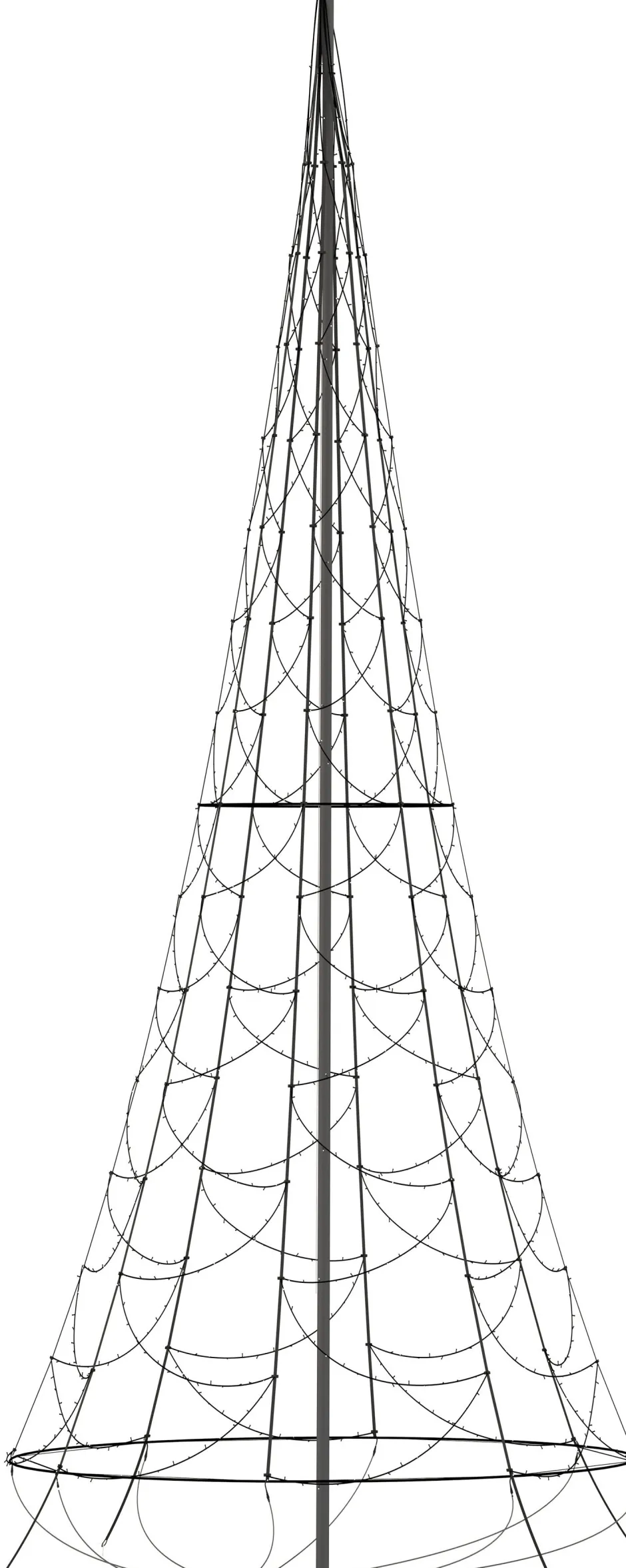 Zum Aufstellen der Fahnenmast-Lichterpyramide wird kein Werkzeug benötigt. In nur 10 bis 15 Minuten steht der Lichterbaum mit seinen 1200 bunten LED-Lämpchen. Die Maße dieser Fahnenmast-Beleuchtung betragen: 300 x 600 cm.