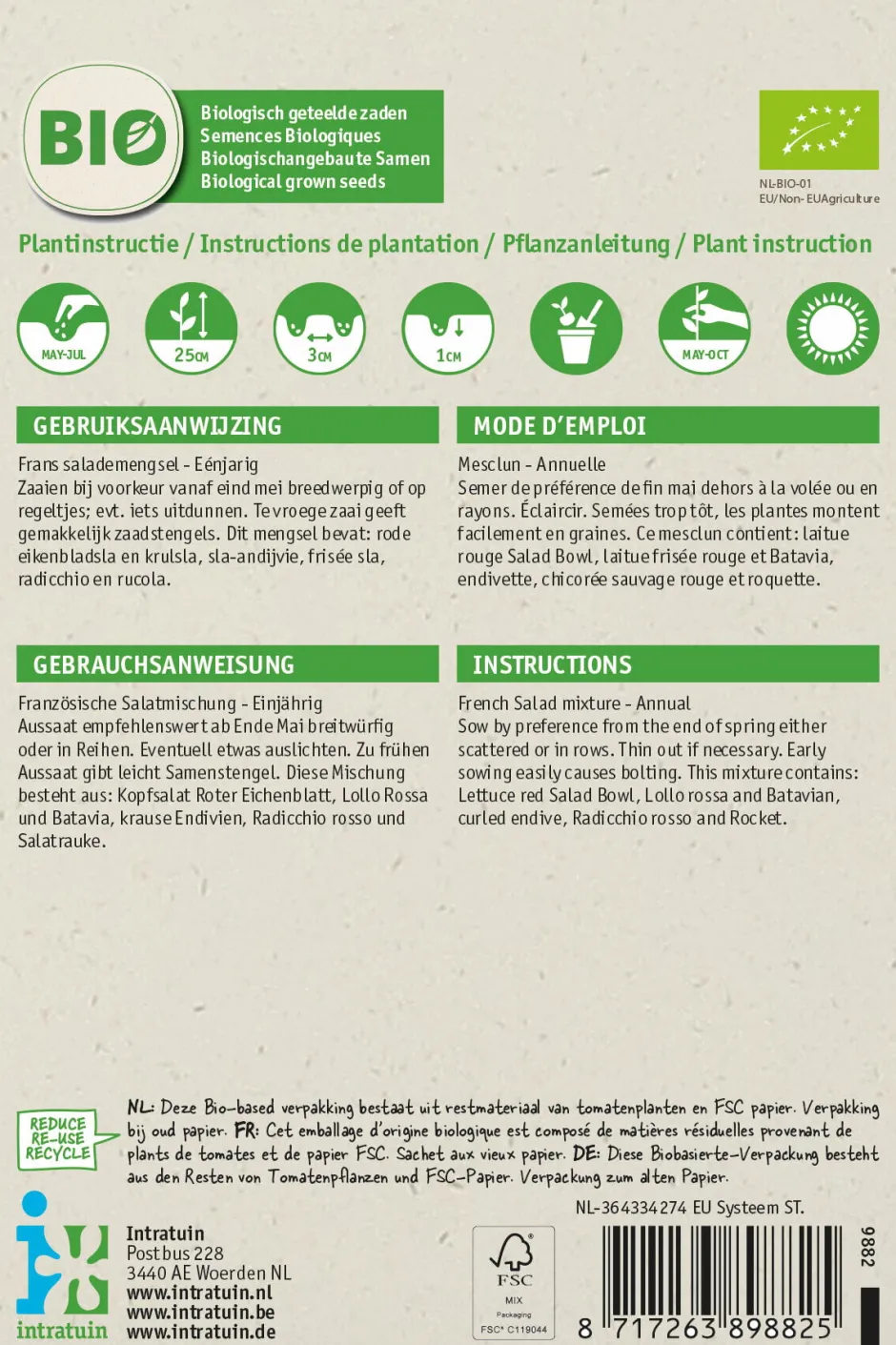 Diese französische Salatmischung ist die perfekte Basis für einen sommerlichen Salat als Grillbeilage oder als Hauptmahlzeit, wenn allerlei leckere Dinge ergänzt werden. Auch als Garnierung von Gerichten eignet sich dieser Salat besonders gut aufgrund der schönen Blattformen und -farben. Frischer als aus dem eigenen Garten geht es natürlich auch nicht!