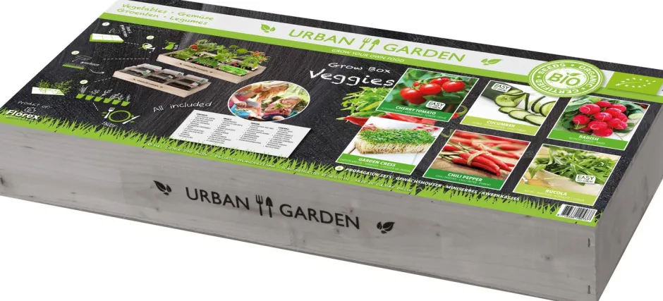 | Inhalt (l) | 1200 zdn BIO-Rucola sprouts + 400 zdn BIO Tuinkers + 10 zdn BIO Peper Jalapeno + 20 zdn BIO Komkommer Marketmore + 25 zdn BIO Tomaten Cerise Cocktail + 60 zdn BIO Radish French Breakfast |