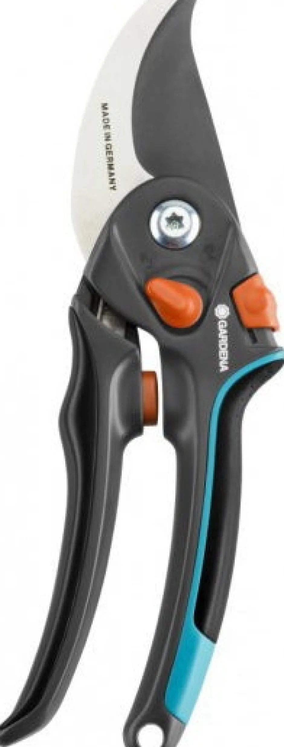 Zudem unterstützt der Puffer eine gelenkschonende Haltung in jeder Schneidposition. Durch die stufenlose Griffweitenverstellung passt Du die Gartenschere individuell an Deine Handgröße an. Besonders praktisch ist die kleinere Griffweite auch für das schnelle und einfache Schneiden von dünnen Zweigen wie Wassertrieben. Für präzise sowie pflanzenschonende Schnitte sorgt das Bypass-Schneidprinzip.