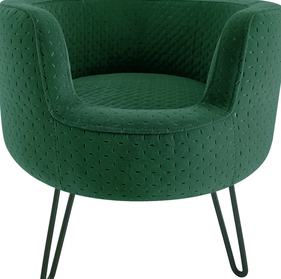 Der Hundekorb Ella von Intratuin hat einen modernen und luxuriösen Look. Der runde Korb ist an einem schwarzen Metallrahmen mit vier dezenten Beinen befestigt. Der Hundekorb ist aus grünem Samt gefertigt und mit Schaumstoff gefüllt, der weich und warm ist. Dieser Blickfänger im Wohnzimmer hat einen Durchmesser von 49 cm und eine Höhe von 44 cm.