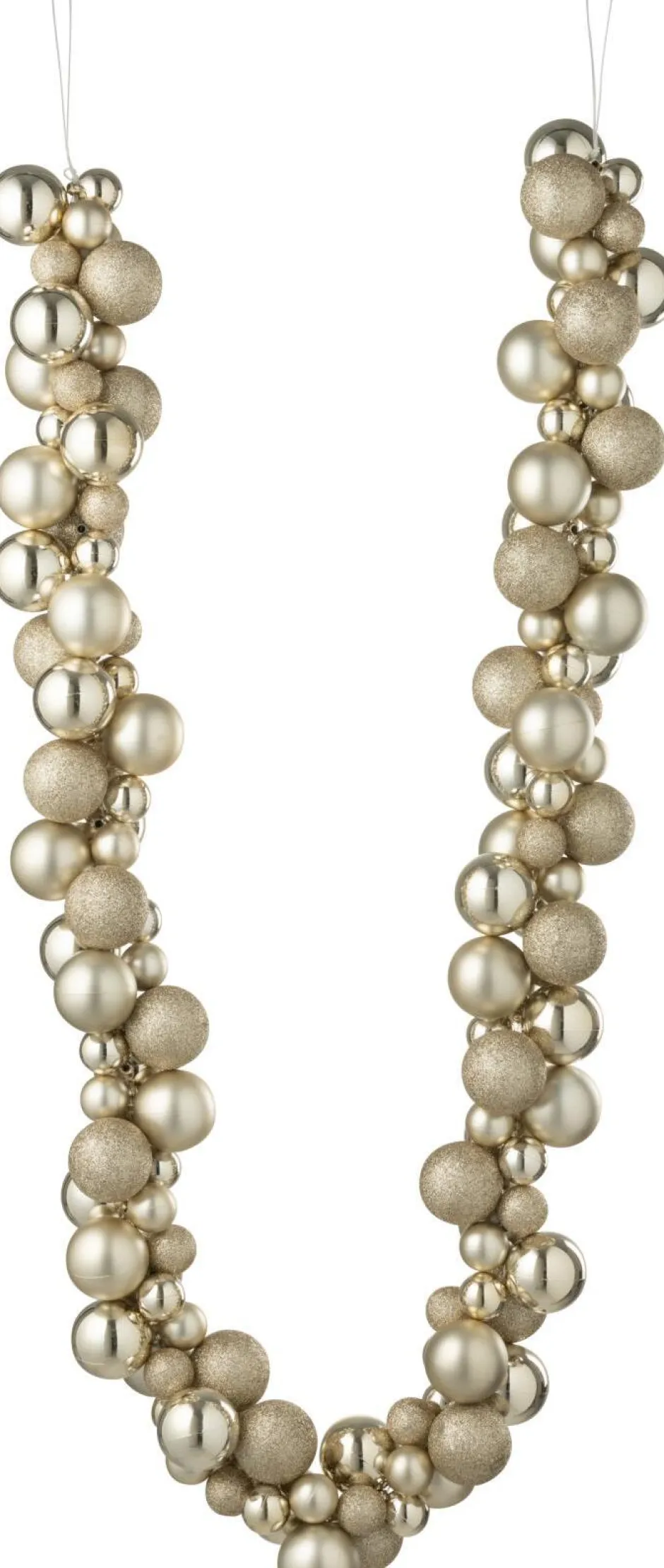 Die J-Line Weihnachtsgirlande Weihnachtskugeln creme 1,6 m ist eine elegante Weihnachtsdekoration, die sofort Atmosphäre und Wärme ins Haus bringt. Diese stilvolle Girlande besteht aus cremefarbenen Weihnachtskugeln in verschiedenen Größen und Oberflächen, von glänzend und matt bis hin zu Glitzer. Mit einer Länge von 1,6 m ist diese Girlande perfekt, um verschiedene Bereiche im Haus während der Feiertage zu dekorieren. Der dezente Cremeton passt sowohl zu klassischen als auch zu modernen Wohnstilen und lässt sich mühelos mit anderer Weihnachtsdekoration kombinieren.