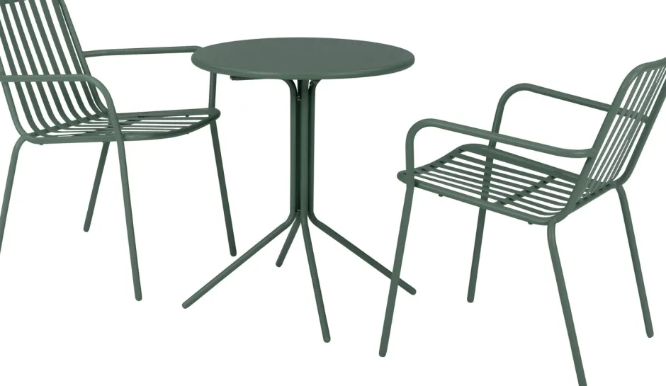 Vorsicht Diese Möbel sind aus Stahl gefertigt, und Stahl kann rosten. Kleine Kratzer auf der Oberfläche können Rostflecken verursachen. Mach dir keine Sorgen, diese können mit einem Lackstift ausgebessert werden. Wir empfehlen, diese Möbel unter einer Veranda aufzustellen.