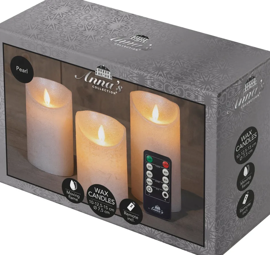 Mit diesen LED Kerzen zauberst du einfach und sicher eine festliche Stimmung. Die bewegliche Flamme flackert ebenso wie bei einer echten Kerze, weshalb die LED-Kerze mit ihrem warmen Licht auch beinah nicht mehr von einer echten Kerze zu unterscheiden ist. Dieses Set enthält 3 LED-Kerzen mit Fernbedienung, exklusive Batterien.