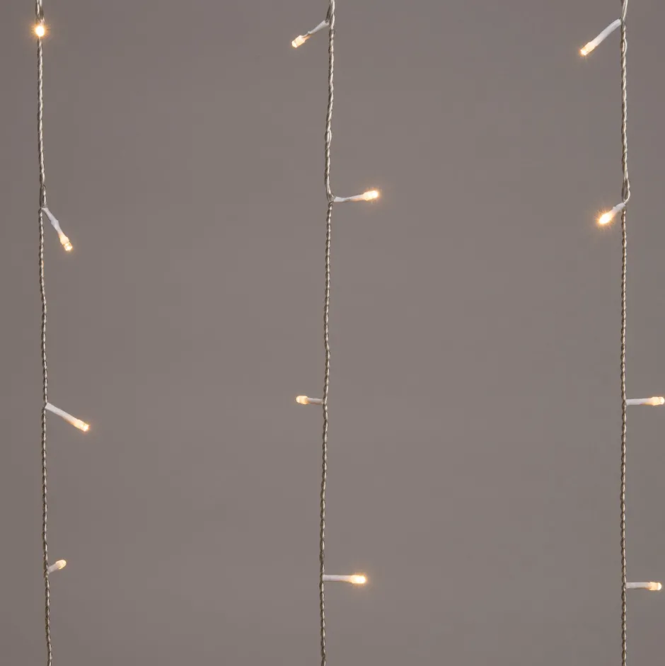 Der Lichtvorhang ist ein stimmungsvolles LED-Licht für den Innen- und Außenbereich und wird mit 5 m transparenter Schnur und einer Zeitschaltuhr geliefert. Hänge diese Lichterkette entlang der Dachrinne auf und genieße das Wintergefühl, wenn die kleinen LED-Lichter im Dunkeln warmweiß leuchten.