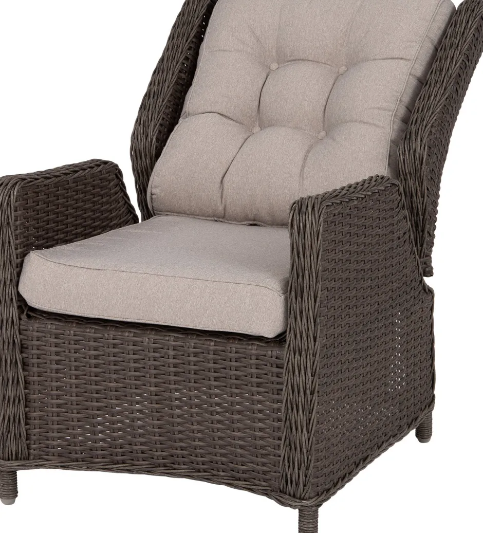 | Pflegeanweisung | Bürste Sand und Schmutz ab mit einer weichen Bürste ab. Mit einem Tuch, lauwarmem Wasser und eventuell einer milden Seife (z.B. Spülmittel) reinigen oder mit dem Gartenschlauch abspritzen. Verwende zur Reinigung der Möbel keine Hochdruckreiniger oder Chem |