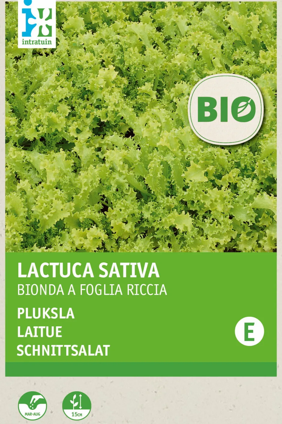 Schnittsalat ist eine bekannte Salatsorte mit weichen und zarten Blättern. Normalerweise wird Salat roh gegessen oder zur Garnierung von Speisen benutzt. Die Sorte ‚Bionda a Foglia Riccia‘ bildet keinen festen Kopf, sondern bleibt lockerer. Ihre auffälligen hellgrünen Blätter sind stark gewellt. Die Aussaat kann von März bis August im Freien in Reihen von 30 cm Abstand erfolgen. Nach dem Auflaufen müssen die Pflanzen nicht stark ausgedünnt werden, da sie keinen vollen Salatkopf bilden müssen. Die Ernte erfolgt 6-8 Wochen nach der Aussaat.