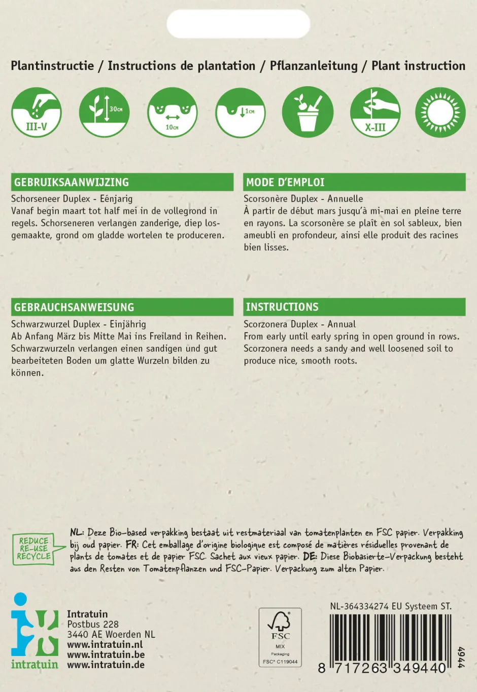 Diese Schwarzwurzeln können im April-Mai ausgesät werden. Ab Ende Oktober können die ersten Schwarzwurzeln aus dem Boden geholt werden. Da die Wurzeln schnell abbrechen, empfiehlt es sich, sie vorsichtig auszugraben. Du kannst den ganzen Winter über ernten, bis der Frühling beginnt. Wenn Frost im Boden ist, kann natürlich nicht geerntet werden. Das Problem kann gelöst werden, indem die Schwarzwurzeln vor dem Frost geerntet und in einem frostfreien Gewächshaus gelagert werden. Du kannst sie auch in einem Behälter mit Sand in einen frostfreien Schuppen stellen, dann halten sie sich monatelang. Schwarzwurzeln werden meist gekocht gegessen, als Spargel mit einer Käsesoße oder als Suppe. Das Schälen kann etwas knifflig sein, am besten trägst du dabei Handschuhe, denn es wird ein klebriger Milchsaft freigesetzt.