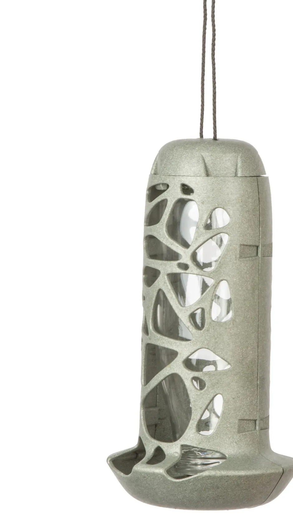 Die Bequemlichkeit dient dem Menschen und in diesem Fall auch unseren gefiederten Freunden. Das Futtersilo Tara bietet Vögeln auf praktische Art und Weise Futter an und ist geeignet für verschiedene Sorten von Vogelfutter. Mit der mitgelieferten Glasflasche kannst du aus dem Meisenknödelhalter im Handumdrehen einen Sonnenblumen- oder Vogelkörnerspender machen. Das Futtersilo Tara hängt vorzugsweise an einer Schnur und schaukelt gleichmäßig in den Ästen eines Baumes mit.