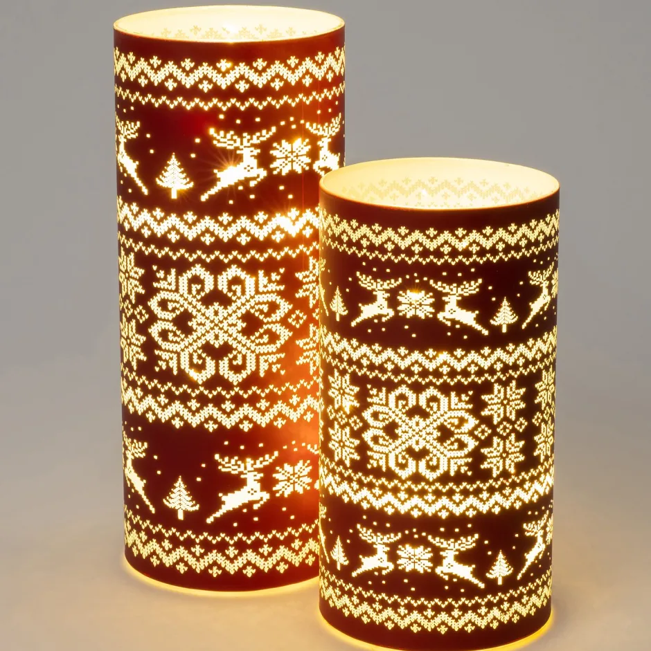 Weihnachten ist das Fest des Lichts und der Lichter. Mach dein Zuhause besonders gemütlich mit diesem Teelichthalter von Intratuin, der bereits eine LED-Beleuchtung enthält. Das schöne Weihnachtsmuster, das darauf gestickt zu sein scheint, das warme weiße Licht und die rote Farbe schaffen eine gemütliche Atmosphäre.