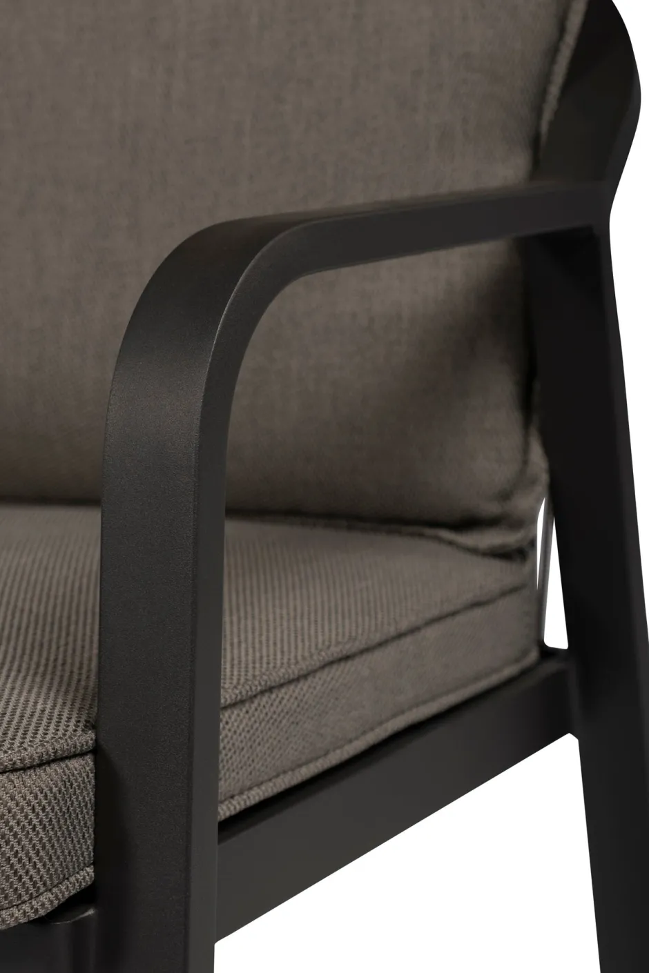Der Gartenstuhl ‚Pep‘ der Marke Tierra Outdoor ist mit seinem modernen und zeitlosen Design ein echter Zugewinn für deine Terrasse. Die abgerundeten Ecken verleihen dem Gartenstuhl ‚Pep‘ einen spielerischen Twist. Der Dining-Gartenstuhl besteht aus einem beschichteten Aluminium-Gestell in der Farbe Charcoal (anthrazit) und einer mit Olefin-Seil bespannten Sitzfläche, die diesen Stuhl zu einem wahrne Hingucker macht. Dieses Seil ist speziell für den Einsatz im Freien entwickelt und wird aus besonders strapazierfähigen synthetischen Fasern gefertigt. So ist die Seilbespannung nicht nur äußerst robust und komfortabel, sondern sieht auch nur sehr dekorativ aus. Kein Wunder also, dass seilbespannte Gartenmöbel voll im Trend sind und derzeit die Gärten erobern! Die hochwertigen „Allwetter“-Kissen in der Farbe grau sind ebenfalls im Lieferumfang enthalten. Das Sitz- und Rückenkissen ist extra gepolstert und sorgt so für optimalen Sitzkomfort. Die Kissen können problemlos bei einem leichten Regenschauer draußen bleiben und erleichtern dir so das Leben!
