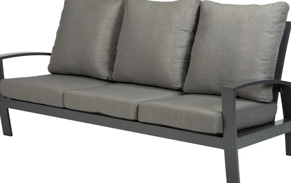 Dieses Loungesofa für 3 Personen gehört zur Gartenlounge-Serie ‚Valencia‘, aber kann durch sein neutrales Aussehen auch gut mit anderen Gartenmöbeln kombiniert werden. Das Outdoor-Loungesofa ‚Valencia‘ ist eine hochwertiger und komfortablesr 3-Sitzer für den Garten. Das schlichte Design sorgt für einen zeitgemäßen Look, der in Kombination mit den großen Kissen in der Farbe anthrazit ein gemütliches und zugleich modernes Lounge-Ambiente weckt.