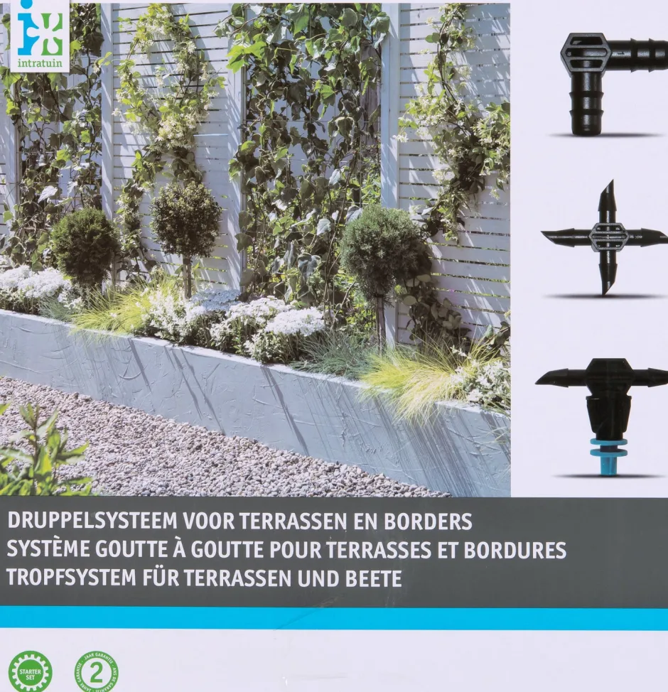 Auch wenn die Sonne brennt und es lange warm ist: Mit diesem Tropfsystem von Intratuin sorgst du dafür, dass es deinen Pflanzen in Beeten und auf der Terrasse gut geht. Dieses Tropfsystem wird zur Bewässerung von Blumenkästen auf Terrassen und in Beeten verwendet. Es handelt sich um einen wassersparenden Gartenberegner. Einschließlich 15 m Zufuhrleitung, 15 m Verteilleitung und Druckregler mit Filter.