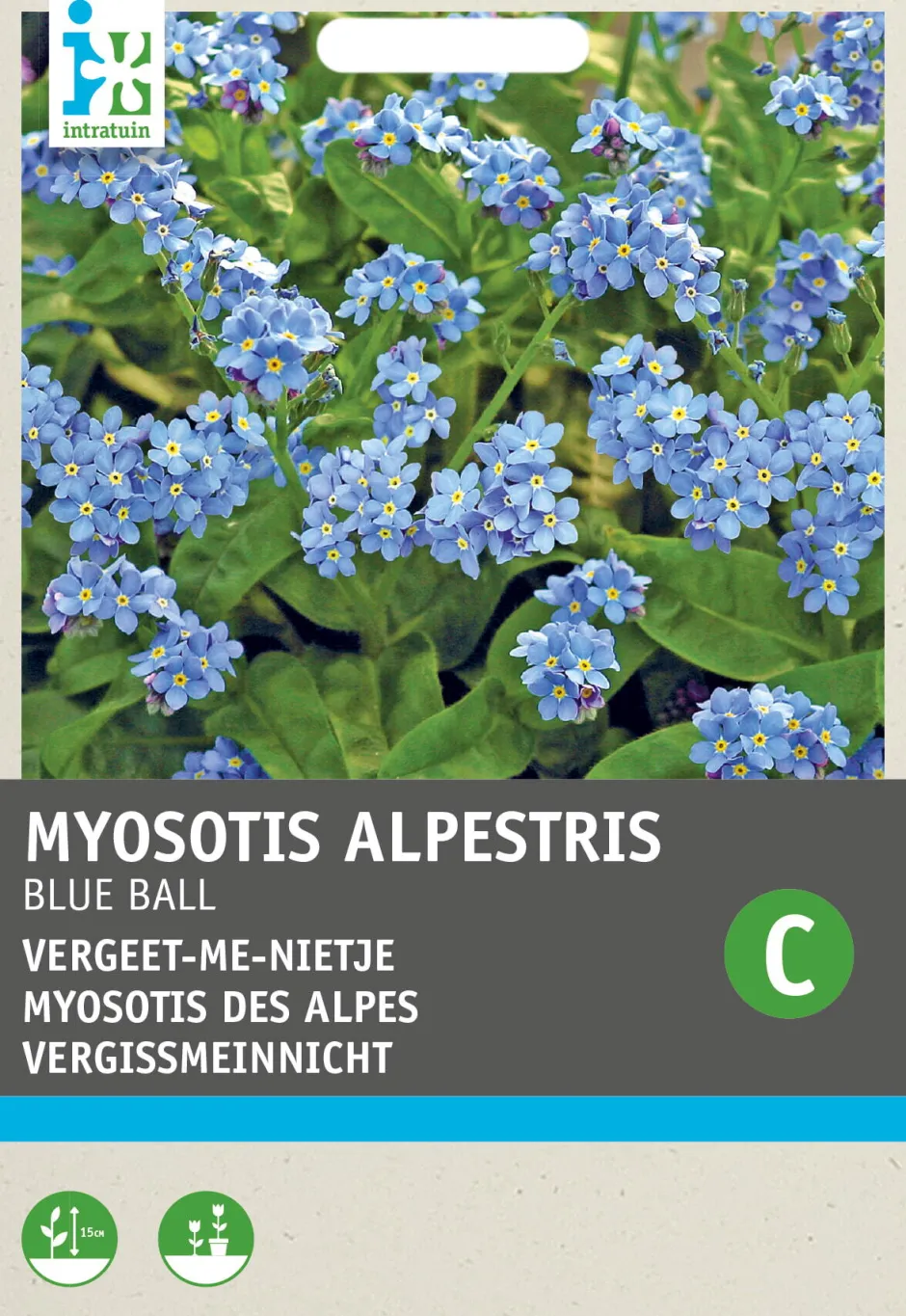 Vergissmeinnicht ‚Blue Ball‘ kann von Juni-September im Freien in ein Saatbeet gesät und im Oktober-November ausgepflanzt werden. Die Pflanzen halten der Winterkälte stand und blühen vom zeitigen Frühjahr bis in den August hinein weiter. Die Höhe beträgt 25-40 cm.