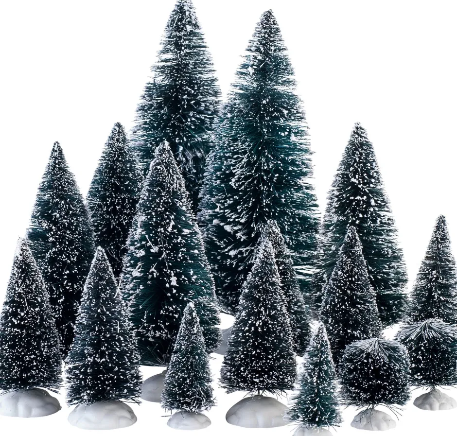 Diese Miniatur-Bäume eignen sich hervorragend als Deko in deinem Weihnachtsdorf. Verpackungsinhalt: 16 Stück.