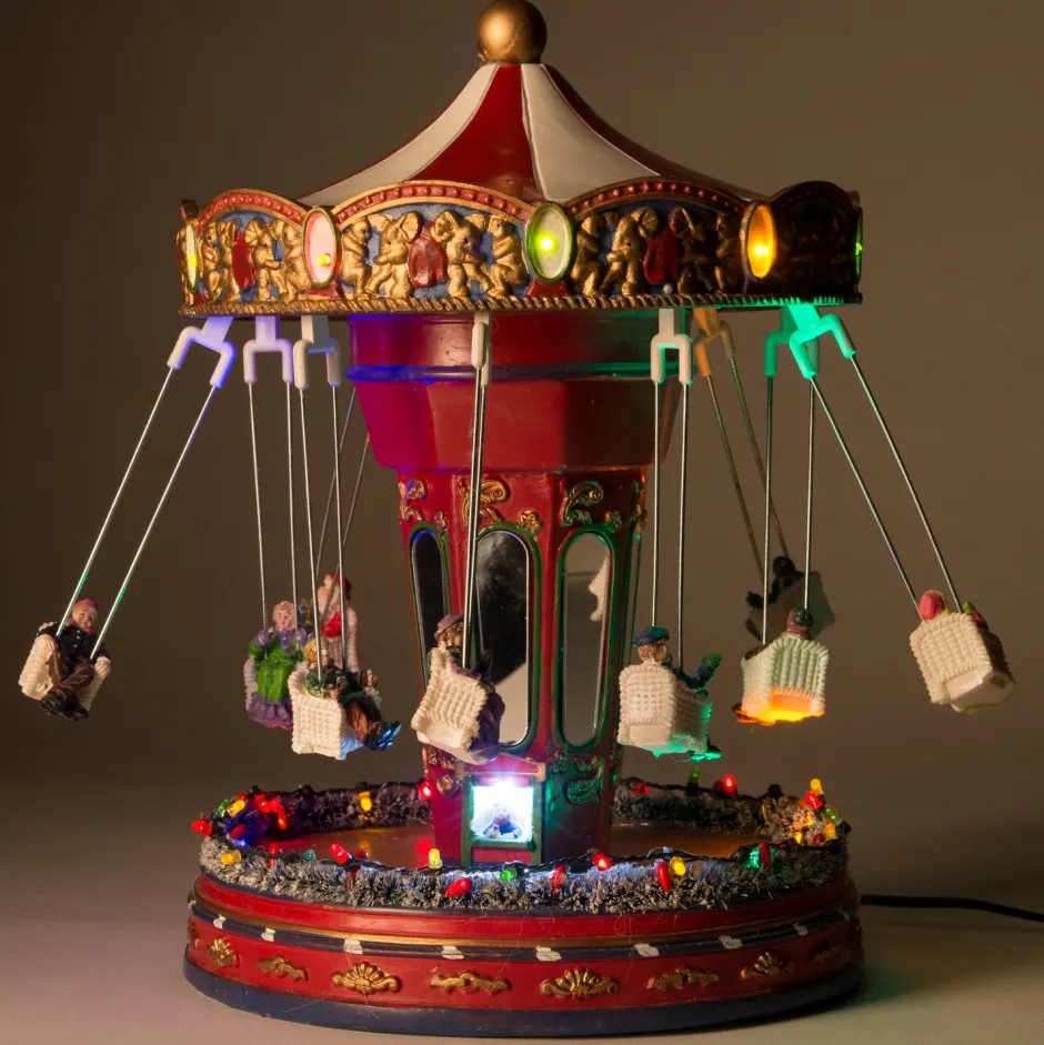 Das Weihnachtsdorf Karussell von Intratuin sorgt für festliche Stimmung in deinem Miniatur-Weihnachtsdorf. In dem Kettenkarussell befinden sich Kinder und das Karussell dreht sich und macht Musik. Das Dach und der Fuß des Karussells sind mit bunten LED-Lämpchen fröhlich beleuchtet. Die Beleuchtung, Bewegung und die Musik werden über einen 4,5 Volt Adapter betrieben. Dieser ist nicht im Lieferumfang enthalten, sondern separat bei Intratuin erhältlich. Wirf auch einen Blick in unser Weihnachtsdorf-Sortiment, wenn du dein Weihnachtsdorf weiter ausbauen und dekorieren willst.