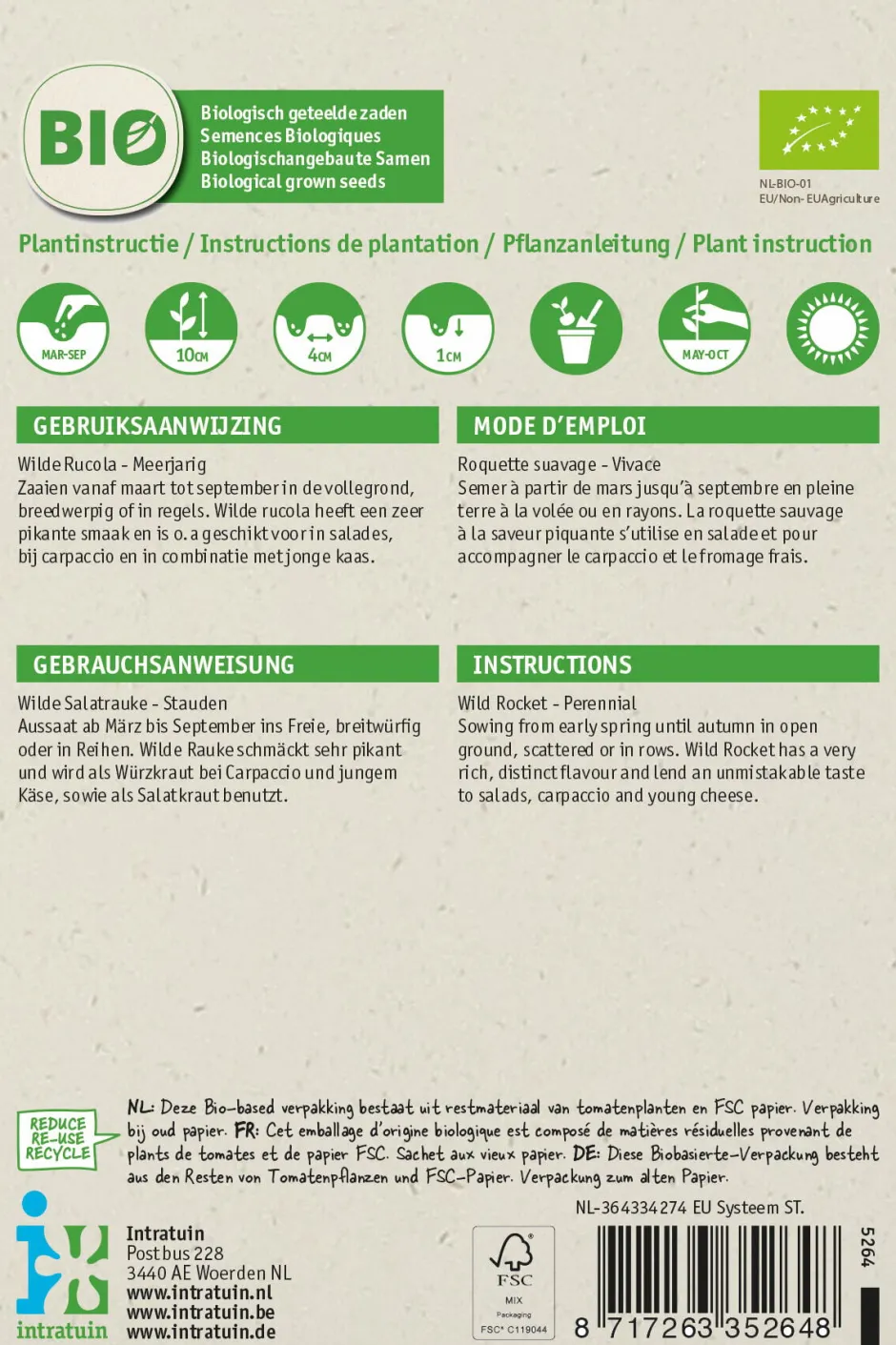 Der Rucola ist ein Kohl, der zur Familie der Kreuzblütler gehört und auch schöne Blüten bekommen kann, die essbar sind und sogar etwas schärfer sind als die Blätter. Rucola wächst am besten im Halbschatten und ist reich an Vitaminen und Mineralstoffen. Rucola hat einen würzigen, nussigen Geschmack. Die Blätter können roh gegessen werden, aber auch gedünstet. Der Gemeine Rucola ist zarter und milder im Geschmack als der Wilde Rucola. Kombiniere die Blätter in Salaten, Eintöpfen, Carpaccio oder einem gesunden Sandwich.