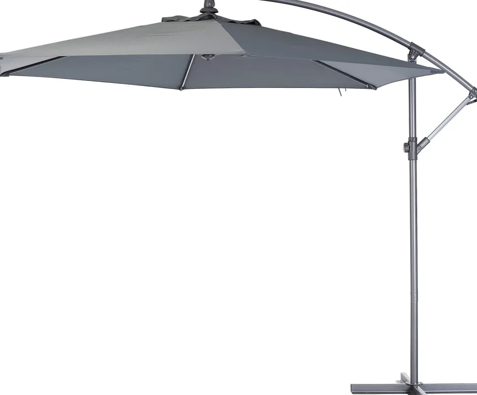 Dieser Ampelschirm ist mit einem Kreuzfuß aus Metall ausgestattet, der mit Fliesen beschwert werden muss. Der Sonnenschirm ist nicht für einen gewöhnlichen Sonnenschirmständer geeignet.