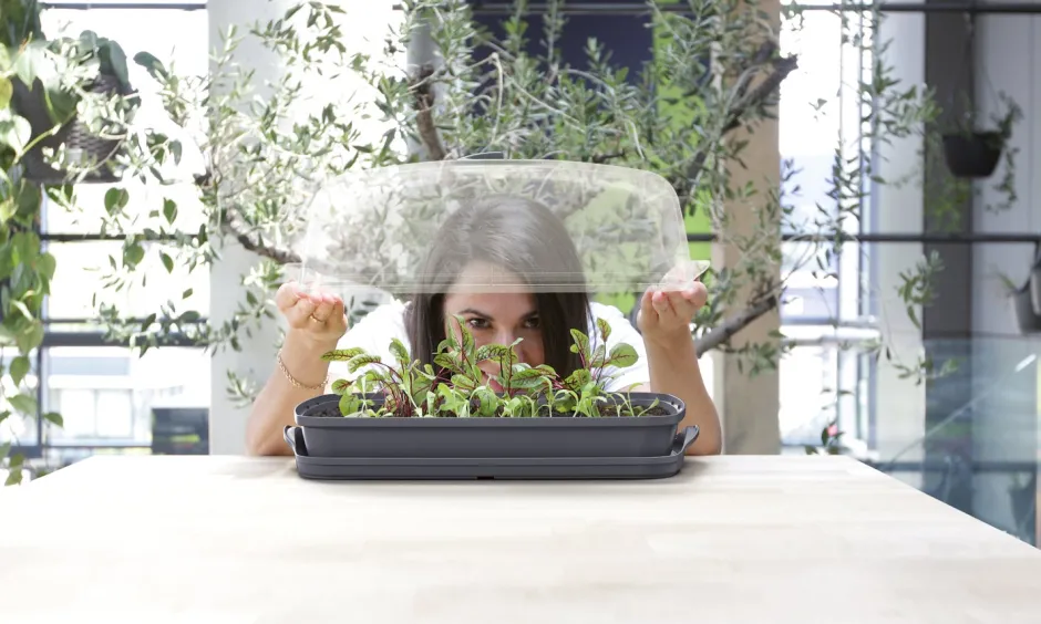 Der durchsichtige Deckel mit verstellbaren Belüftungsöffnungen schafft ein ideales Mikroklima und verhindert, dass die Pflanzen weder zu kalt noch zu warm stehen, weder zu trocken noch zu feucht und schützt den Keimling außerdem vor lästigen Insekten.
