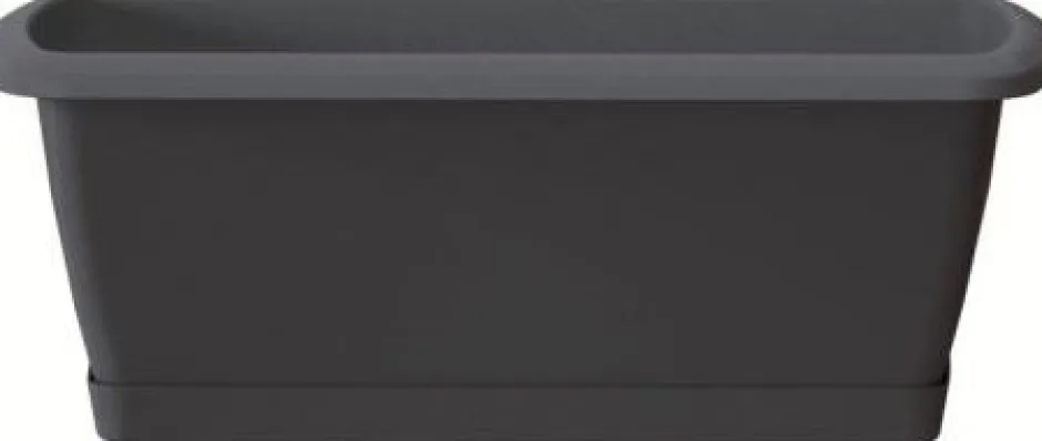 Dieses rechteckige Modell misst 59,3 x 19 x 14 cm. Im Lieferumfang sind außerdem der Untersetzer und die Halter enthalten, um den Balkonkasten aufhängen zu können.