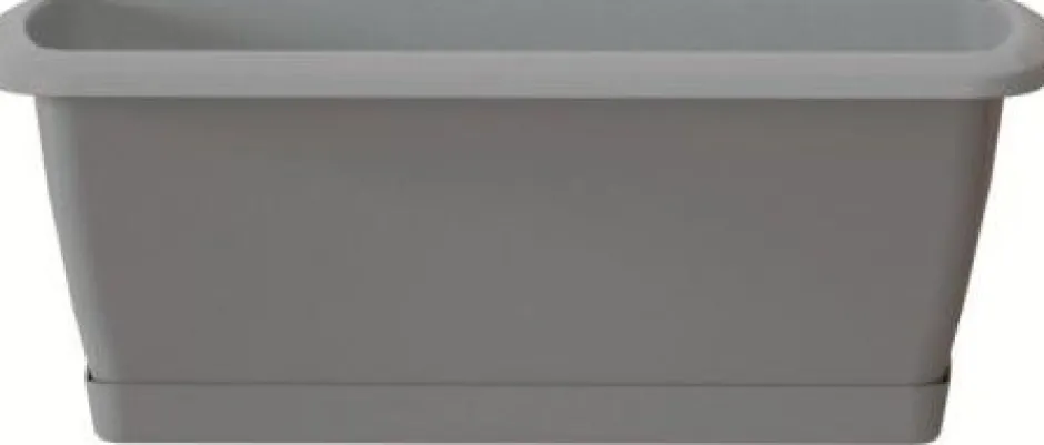Dieses rechteckige Modell misst 59,3 x 19 x 14 cm. Im Lieferumfang sind außerdem der Untersetzer und die Halter enthalten, um den Balkonkasten aufhängen zu können.