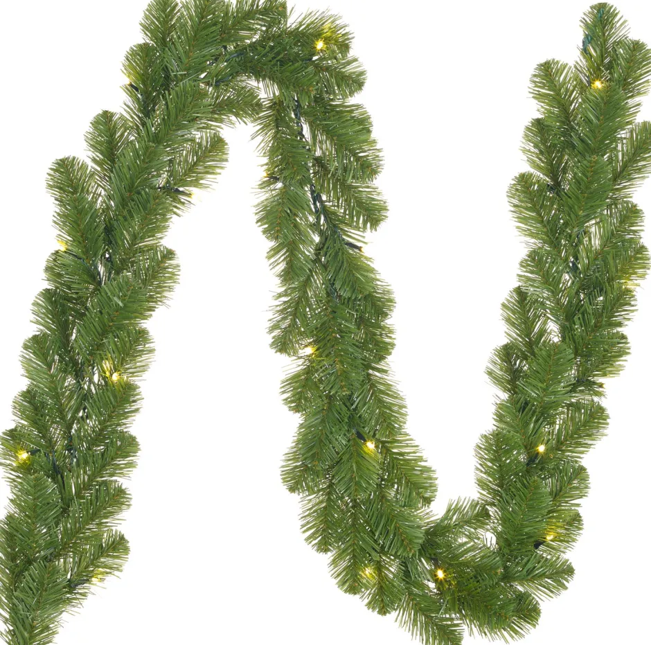 Die 20 warmweiß leuchtenden LED-Lämpchen sind in den Zweigen der 270 cm langen Weihnachtsgirlande verarbeitet und batteriebetrieben. Für die Beleuchtung werden 2 AA-Batterien benötigt; diese sind nicht im Lieferumfang enthalten. Dank der Beleuchtung kannst du die Tannengirlande auf vielen Plätzen aufhängen und für einen weihnachtlichen Hingucker sorgen.