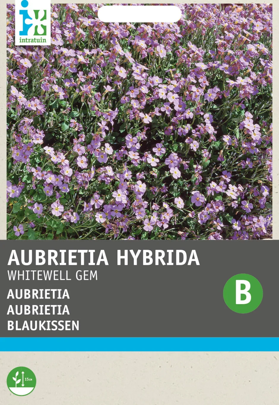 Aubrietia hybrida ‚Whitewell‘ blüht mit kleinen, lila-weißen Blüten im April-Mai. Diese früh blühende Staude wird nicht höher als 10 cm und kann als Bodendecker, Rabattenpflanze oder im Steingarten verwendet werden. Es ist eine schöne Pflanze, die du an einem sonnigen Ort an einer Wand oder über den Rand eines Blumentopfes hängen lassen kannst. Diese Pflanze gedeiht nur in trockenem, luftigem Boden und lässt sich gut mit anderen Frühjahrsblühern kombinieren. Dazu gehören Krokusse, Narzissen und Gänsekresse.