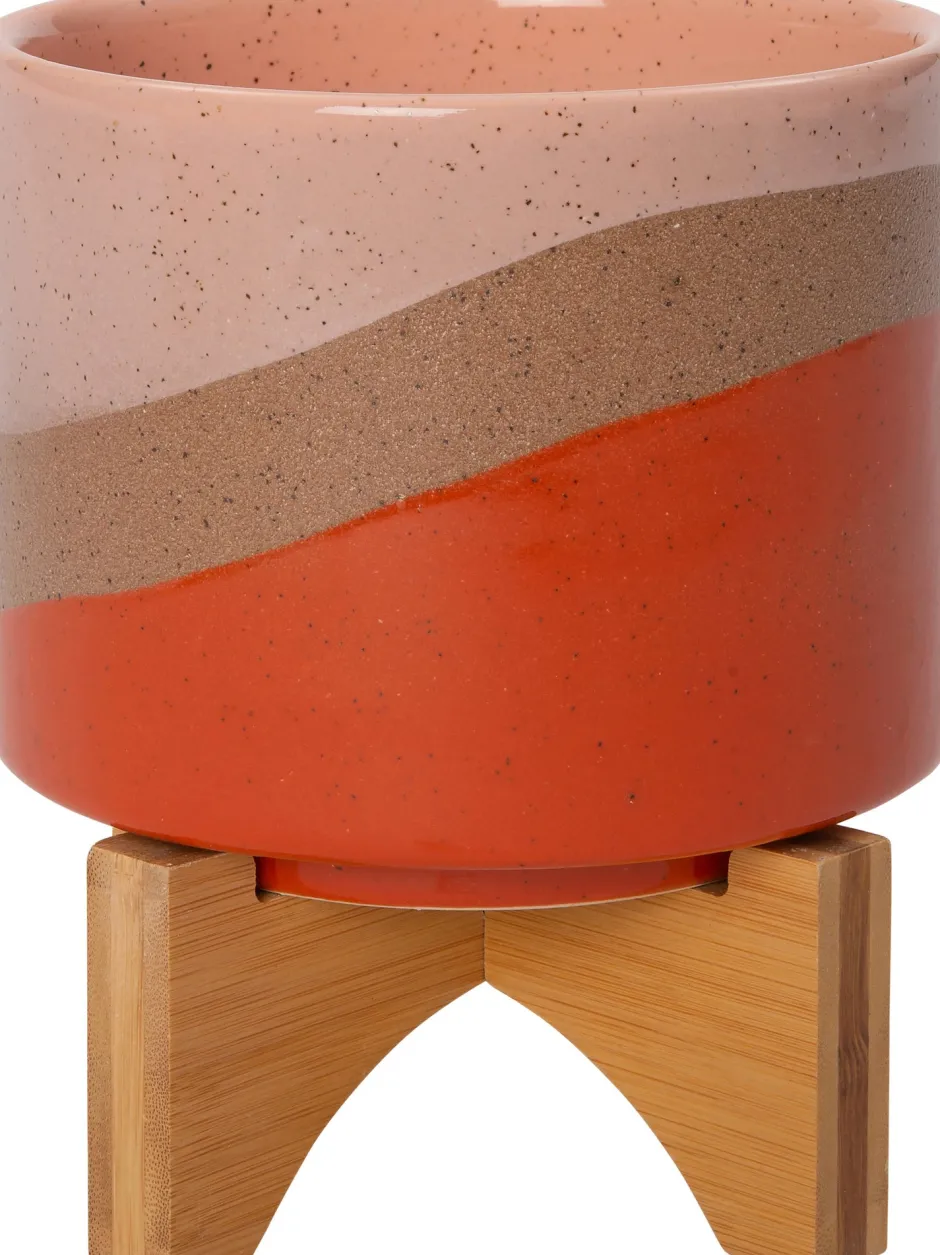 Verschönere dein Wohnzimmer mit diesem schönen Blumentopf aus der Intratuin Kollektion. Der Blumentopf hat eine schöne rote Farbe und ist damit ein echter Hingucker! Darüber hinaus hat er ein schönes zweifarbiges Muster. Der Blumentopf hat eine zylindrische Form und steht auf einem kleinen hölzernen Sockel, wodurch er etwas höher steht.
