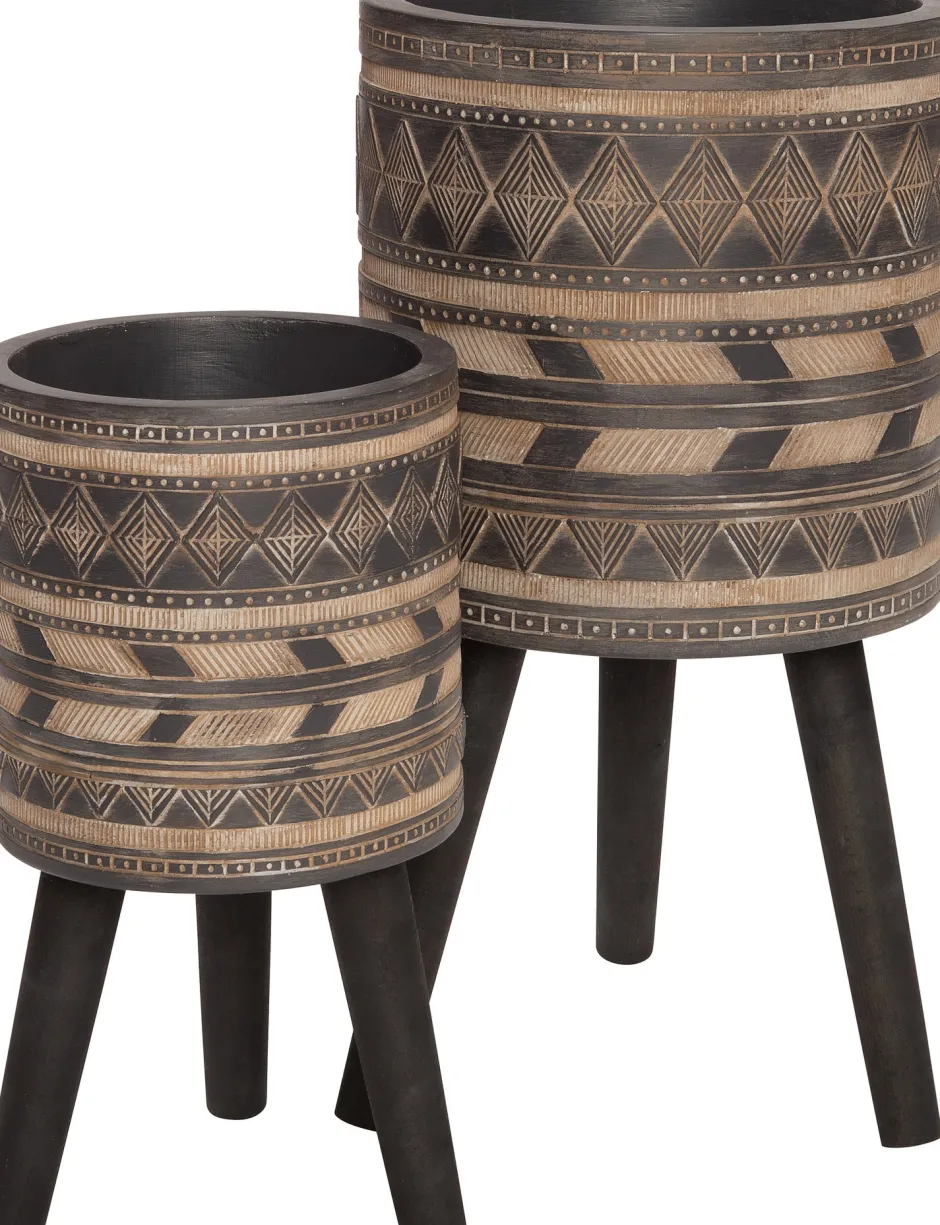 Die schöne Struktur verleiht diesem Topf ein natürliches, robustes Aussehen. Dieser Blumentopf auf Beinen aus der Serie ‚Mila‘ ist grau-braun und hat ein geometrisches Muster. In der Mila-Serie sind Blumentöpfe in verschiedenen Größen erhältlich. Dieser Topf hat einen Durchmesser von 22 cm und eine Höhe von 42 cm. Die Blumentöpfe sind handgefertigt, daher sind sie alle einzigartig und können in Farbe, Form und Größe leicht variieren.