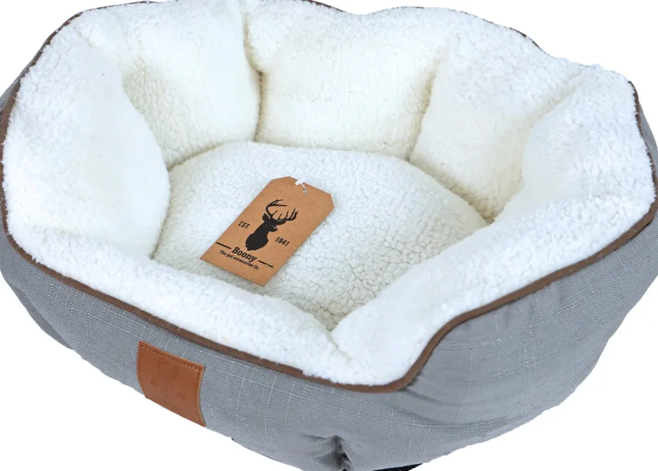 Katzen lieben weiche und gemütliche Plätze, wo sie sich entspannen und stundenlang träumen können. Schaffe für dein Kätzchen mit dem Katzenkorb von Boony Est 1941 einen sicheren Schlafplatz. Der Korb ist stabil, grau und aus Stoff mit einer superweichen Innenseite, die aus einem angenehm weichen Material mit Schafwollstruktur besteht. Der Korb kann auch für kleine bis mittelgroße Hunde verwendet werden. Die Maße des Korbs sind 50 x 40 x 17 cm.