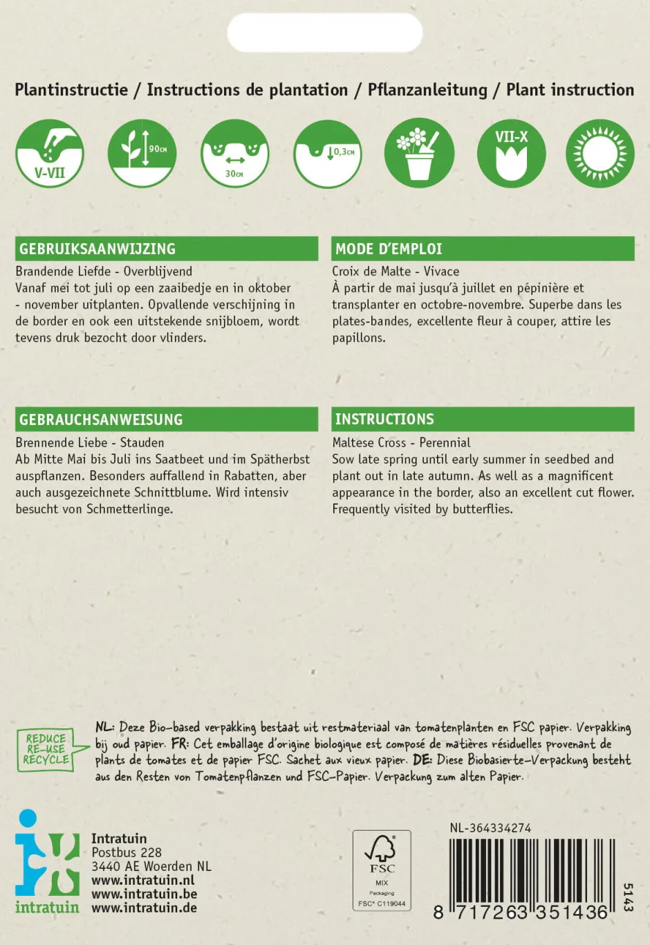 „Brennende Liebe“ ist eine mehrjährige Pflanze, die in einer leuchtend roten Farbe blüht, die man bei vielen anderen Pflanzen nicht sieht. Die Form der Blüten zeigt, dass sie zur gleichen Familie wie die Leimkräuter gehört. Die Höhe erreicht 60-90 cm während der Blütezeit im Juni-August. Die Blüten stehen in Büscheln zusammen und bilden einen Schirm oder eine Zwiebelform. Wähle einen geschützten, sonnigen Platz in feuchtem Boden mit ausreichend Nährstoffen. Im Winter stirbt diese Staude oberirdisch ab, treibt aber im Frühjahr wieder aus den Wurzeln aus.