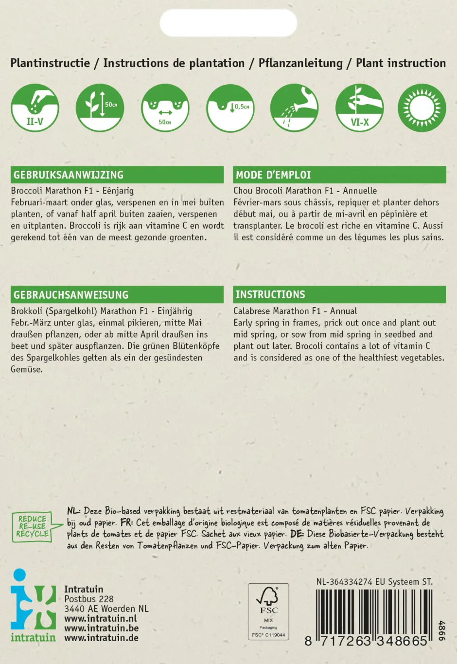 Bei allen Kohlsorten ist es wichtig, beim Anbau eine Fruchtfolge anzuwenden. Das bedeutet, dass Kohl nur alle 4 Jahre auf demselben Grund angebaut werden sollten. Die Fruchtfolge verhindert die Pflanzenkrankheit Kohlhernie (Plasmodiophora brassicae). Achte auch auf Kohlweißlingsraupen, denn diese können große Schäden an den Blättern verursachen. Pflanze Brokkoli an einen sonnigen Platz, da er viel Licht benötigt. Am besten gedeiht Brokkoli auf kalkreichen Lehmböden mit einem hohen pH-Wert. Achte darauf, dass der Boden stets leicht feucht bleibt. Die Aussaat ist von Mitte März bis Anfang Juli draußen im Garten möglich. Nach 5 Wochen können die Brokkoli-Pflanzen mit einem Abstand von 50 x 40 cm ausgepflanzt werden. Geerntet wird von Juni bis Oktober. Nach der Ernte kannst du die Pflanzen weiter wachsen lassen. Dann werden weitere Blütenköpfe erscheinen, die vor der Blüte geerntet werden sollten.
