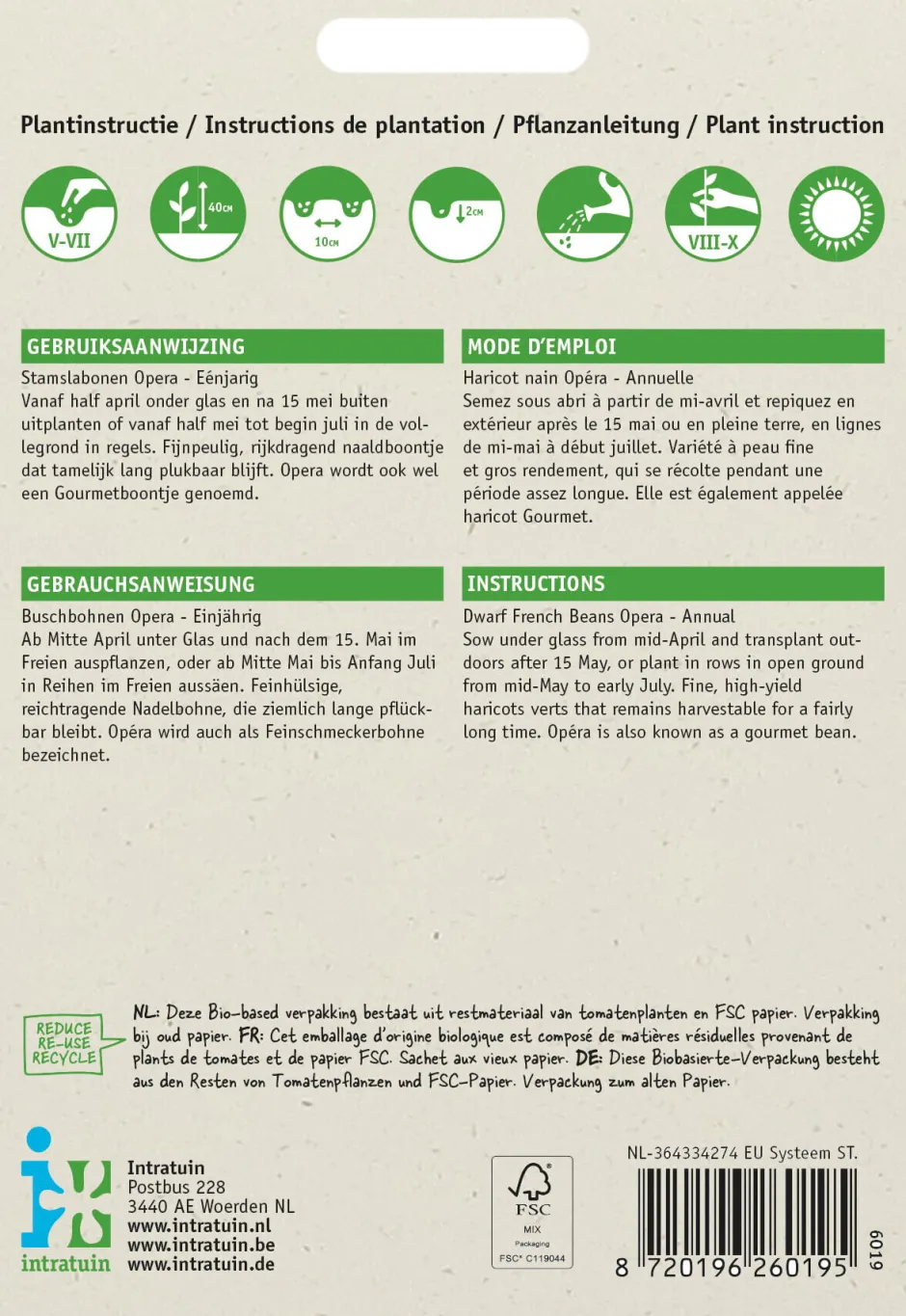 Die Buschbohne Opera ist eine feine Hülsenfrucht, die sehr ertragreich ist und lange geerntet werden kann. Sie wird auch als Schlemmerbohne bezeichnet und eignet sich sowohl für den Unterglas- als auch den Freilandanbau.