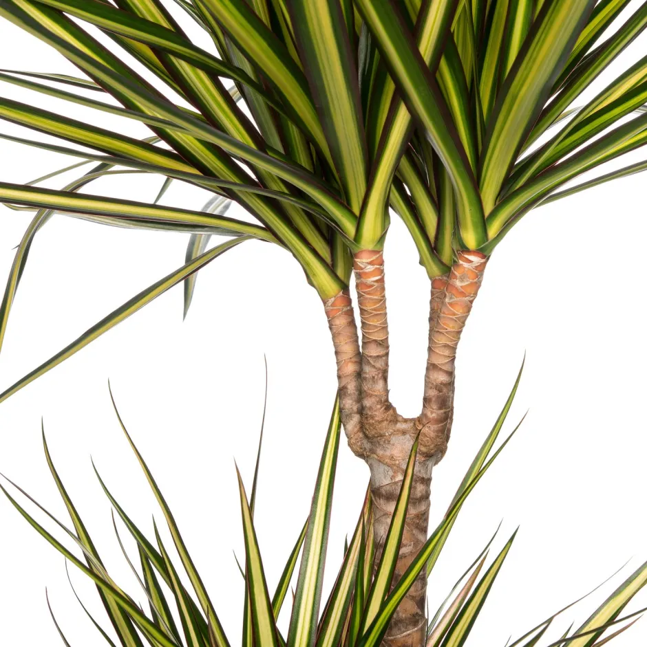 Dracaena marginata ist die beliebteste Drachenbaum-Art und als Zimmerpflanze äußerst pflegeleicht. Zudem können die Pflanzen besonders alt werden, weshalb sie lange Freude an der Blattschönheit haben werden. Im Deutschen ist die Dracaena marginata auch unter den Namen „Gerandeter Drachenbaum“ ebenso wie „Schmalblättriger Drachenbaum“ bekannt. Beide Bezeichnungen verweisen auf die Form und Farbe der Blätter: Die Dracaena marginata ‚Sunray‘ hat schmalen, gelblich-grüne Blätter mit dunkelgrüner Umrandung.