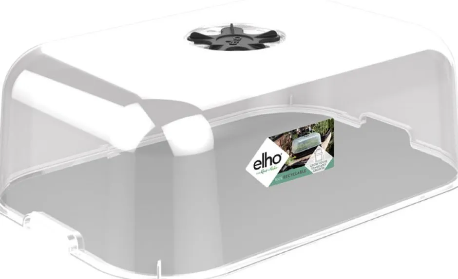 Lasse Pflanzen, Stecklinge und selbstgezogenes Gemüse schneller wachsen mit dem ‚green basics‘ Anzuchtkasten. Der Deckel lässt sich einfach auf einen der ‚green basics‘ Anzuchttöpfe setzen und ist ideal für größere Kräuter wie Schnittlauch, Basilikum oder Tomatenpflanzen. Mit der Lüftungsscheibe auf der Oberseite kannst du die Belüftung, Sauerstoffzufuhr und Temperatur im Anzuchtkasten einfach regulieren. Der Deckel sorgt außerdem dafür, dass keine Schädlinge an dein Saatgut, deine Stecklinge oder deine Ernte gelangen können. Alle Produkte aus der Elho ‚green basics‘-Kollektion sind aus recyceltem Kunststoff hergestellt. Du kannst den Anzuchtkasten auch problemlos in die Sonne stellen, denn der UV-Filter sorgt dafür, dass Stecklinge und Pflanzen nicht von der Sonne verbrannt werden. Darüber hinaus ist der Anzuchtkasten wartungsfreundlich und leicht zu reinigen. Der Anzuchtkasten ist wetterfest und für Temperaturen bis -40 °C geeignet.