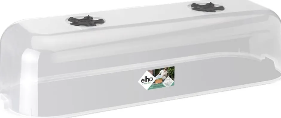 Lasse Pflanzen, Stecklinge und selbstgezogenes Gemüse schneller wachsen mit dem ‚green basics‘ Anzuchtkasten. Der Deckel lässt sich einfach auf einen der ‚green basics‘ Anzuchttöpfe setzen und ist ideal für größere Kräuter wie Schnittlauch, Basilikum oder Tomatenpflanzen. Mit der Lüftungsscheibe auf der Oberseite kannst du die Belüftung, Sauerstoffzufuhr und Temperatur im Anzuchtkasten einfach regulieren. Der Deckel sorgt außerdem dafür, dass keine Schädlinge an dein Saatgut, deine Stecklinge oder deine Ernte gelangen können. Alle Produkte aus der Elho ‚green basics‘-Kollektion sind aus recyceltem Kunststoff hergestellt. Du kannst den Anzuchtkasten auch problemlos in die Sonne stellen, denn der UV-Filter sorgt dafür, dass Stecklinge und Pflanzen nicht von der Sonne verbrannt werden. Darüber hinaus ist der Anzuchtkasten wartungsfreundlich und leicht zu reinigen. Der Anzuchtkasten ist wetterfest und für Temperaturen bis -40 °C geeignet.