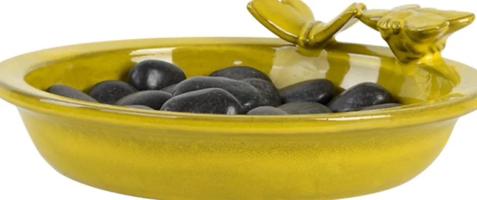 Das Produkt hat eine schräge Wand, damit die Bienen aus der Schale herausklettern können. Die Steine sind nicht nur ein schönes Accessoire, sondern erfüllen auch eine wichtige Aufgabe als Landeplatz für die Insekten.