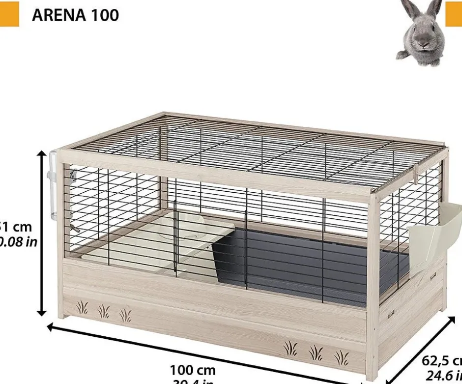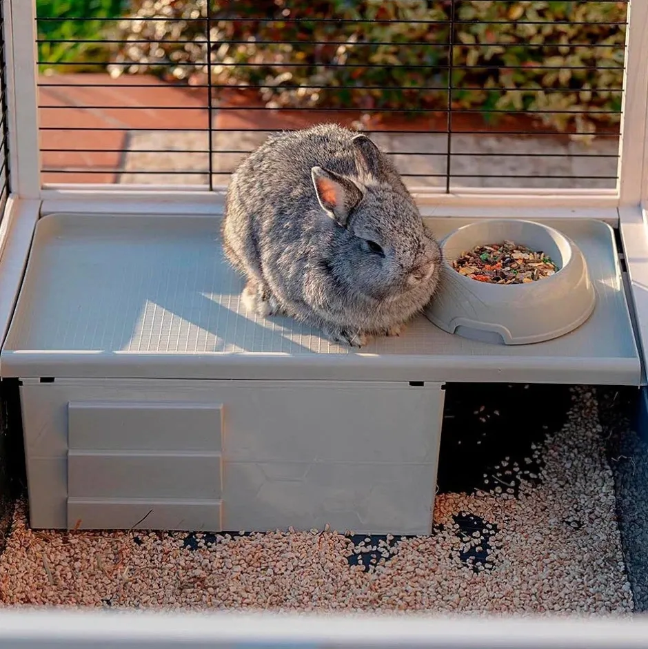 Dieser Kaninchenstall ist mit allem Komfort ausgestattet, um dein Haustier von Anfang an willkommen zu heißen: Heuraufe, Futterschale aus Kunststoff und Trinkflasche, ein Haus mit praktischem Dach und Leiter. Das Ganze ist sehr stabil und mit Füßen ausgestattet, die einen perfekten Stand gewährleisten.