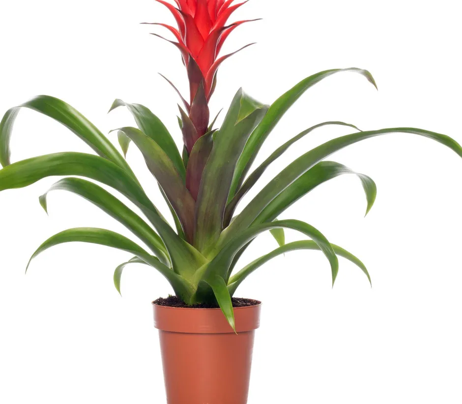 Die Guzmania ‚Hope‘ hat schöne rote Hochblätter. Die fröhliche Pflanze blüht nur einmal, dafür aber monatelang. Danach kannst du dich noch sehr lange an den schönen Blättern erfreuen.