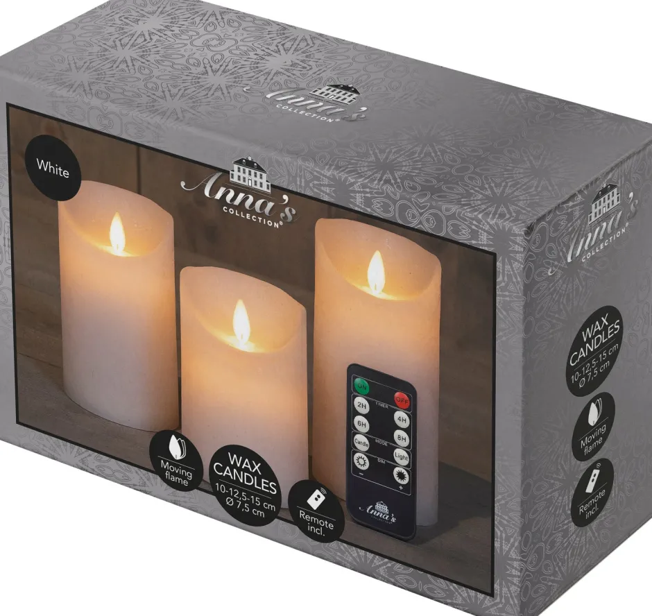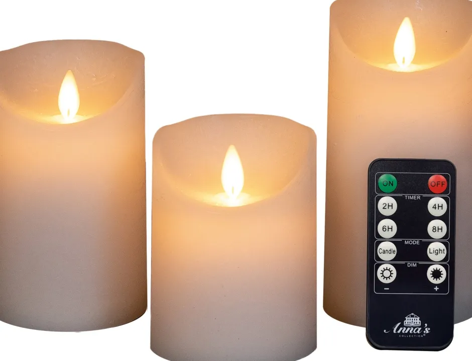 Mit diesem LED Kerzen-Set zauberst du im Handumdrehen eine gemütliche Atmosphäre zuhause. Die bewegliche Flamme flackert fast wie eine echte Kerze, weshalb die LED-Kerzen wie echt aussehen. Dieses Set besteht aus 3 LED-Kerzen in der Farbe Weiß mit Fernbedienung. Die notwendigen Batterien sind nicht im Lieferumfang enthalten.