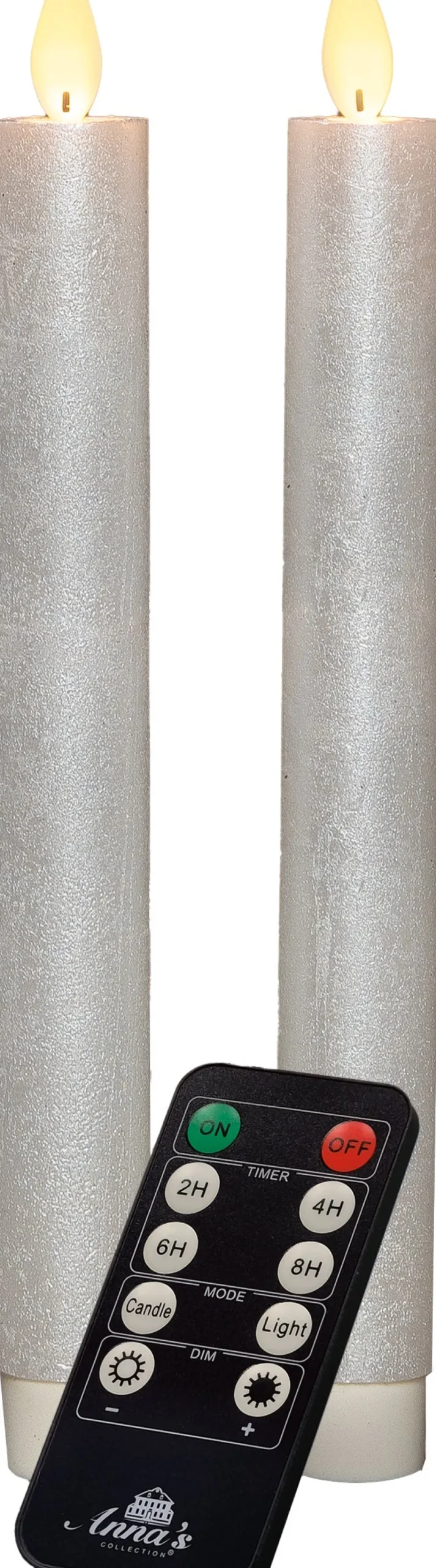 Diese 2 Stabkerzen haben LED-Lämpchen und lassen sich bequem mit der mitgelieferten Fernbedienung ein- und ausschalten. Die LED-Stabkerzen in der Farbe Perlmutt sind batteriebetrieben, haben eine bewegliche Flamme und sind 23 cm lang. Erhältlich in ver