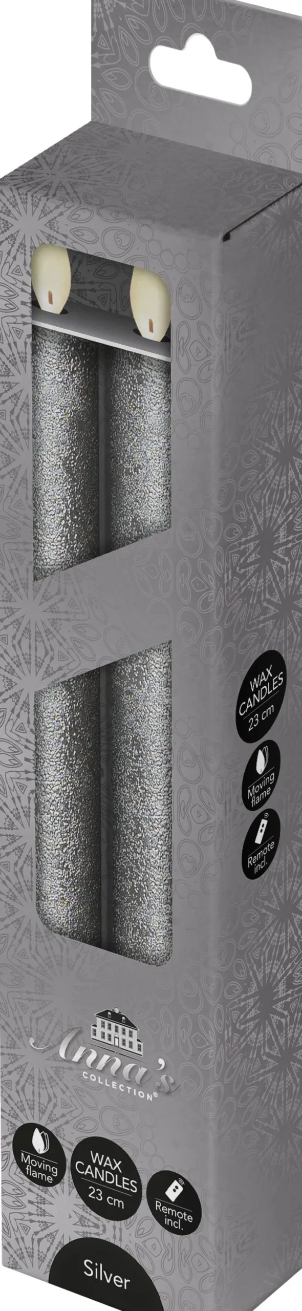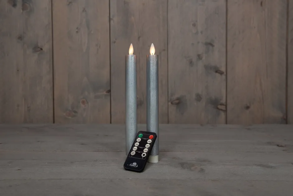 Diese 2 Stabkerzen haben LED-Lämpchen und lassen sich bequem mit der mitgelieferten Fernbedienung ein- und ausschalten. Die LED-Stabkerzen in der Farbe Silber sind batteriebetrieben, haben eine bewegliche Flamme und sind 23 cm lang. Erhältlich in versc